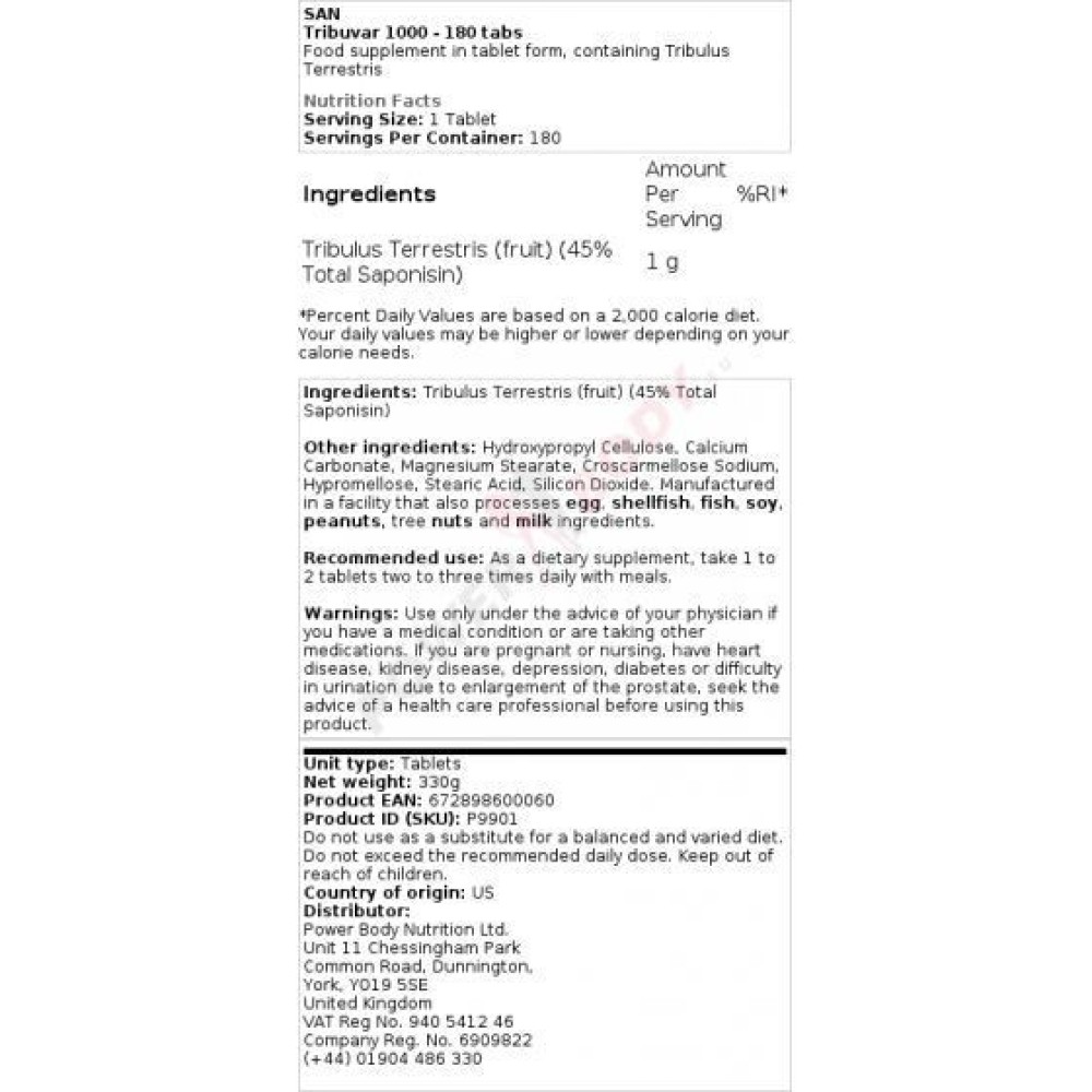 Descrizione San - Tribuvar 1000 180 tablets San